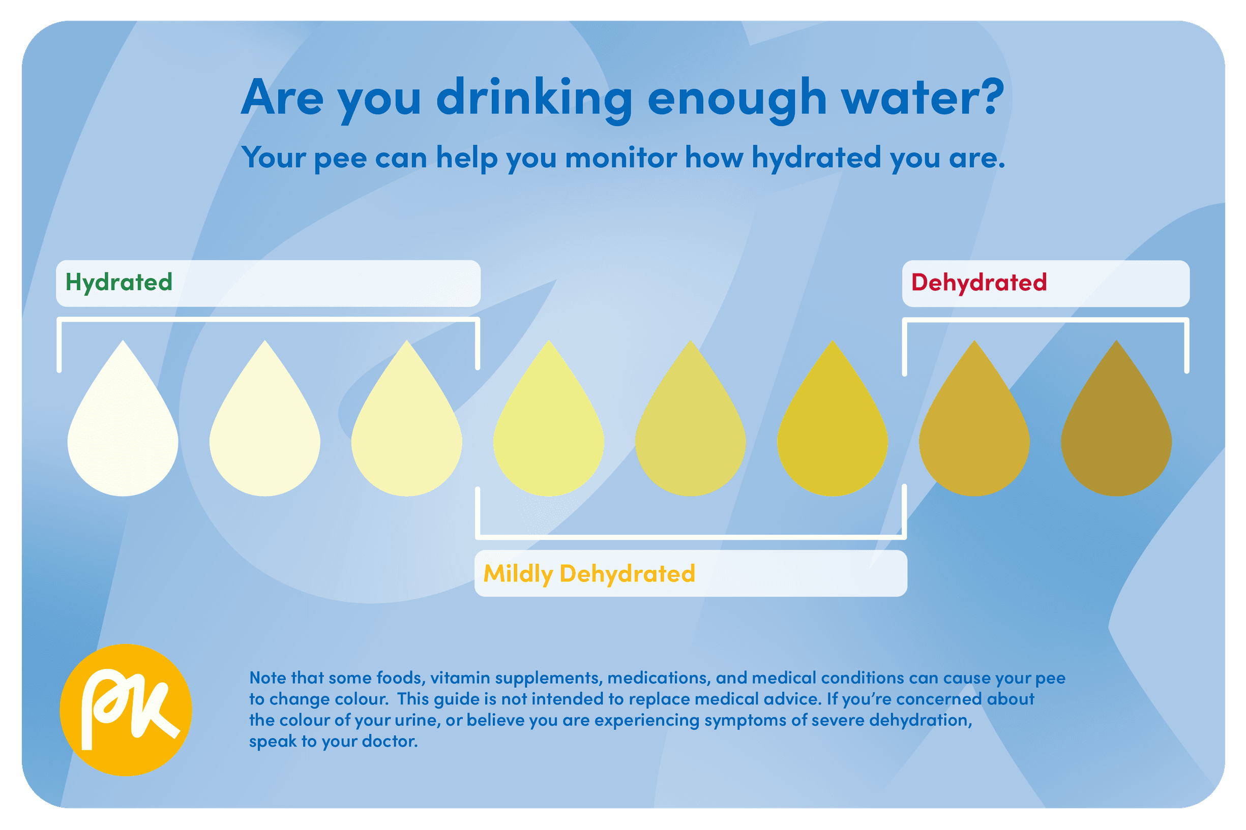 Well, it's time to put the pee in this public service announcement - check your urine! That's right, our urine is a clever little indicator of how our body is going in terms of fluid intake ( 6,7).